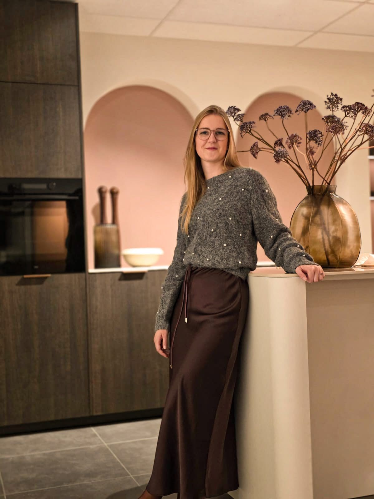 Novah – grijze trui met parels